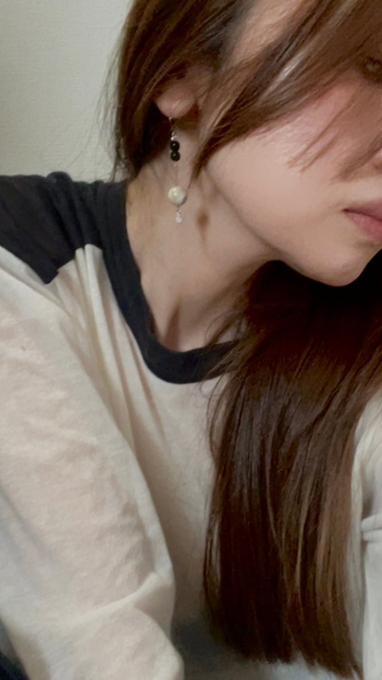 デザインの違うパーツと、silverの金線の間隔のバランスを楽しんだピアス